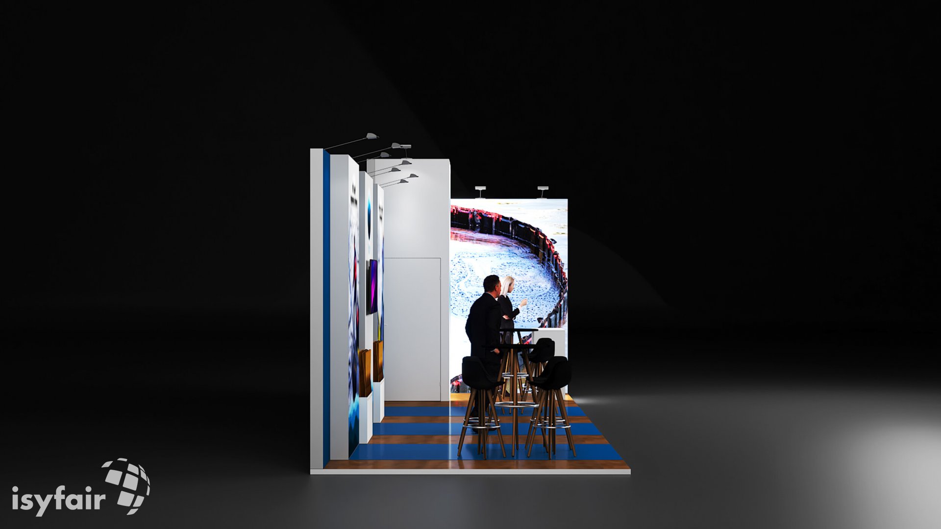 Dieses Messestand Design ist selbstverständlich an Ihre Vorstellungen anpassbar. Senden Sie uns dazu einfach eine E-Mail an - info@ISYFAIR.com oder rufen Sie uns an: +49 6722 9372-234