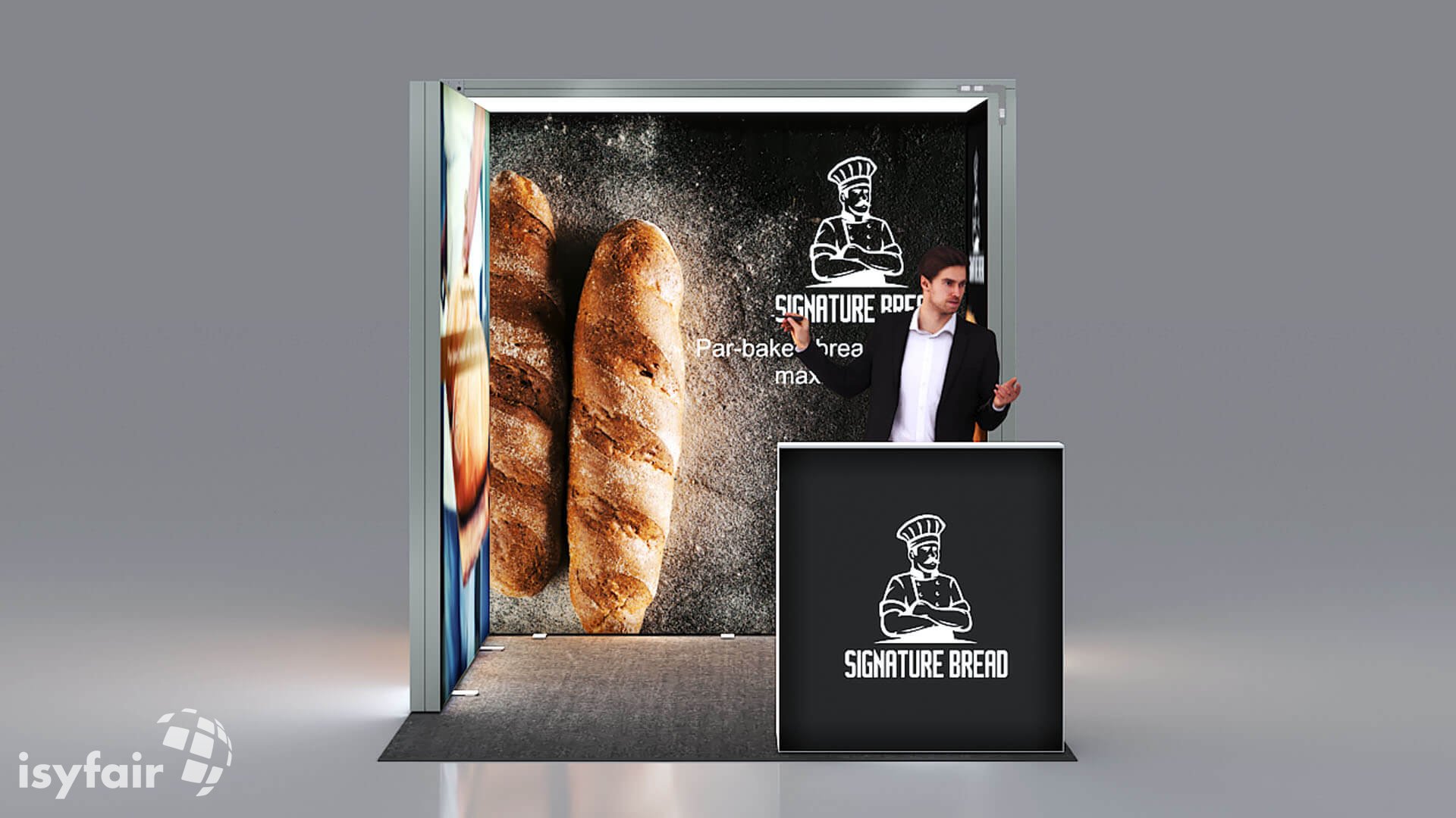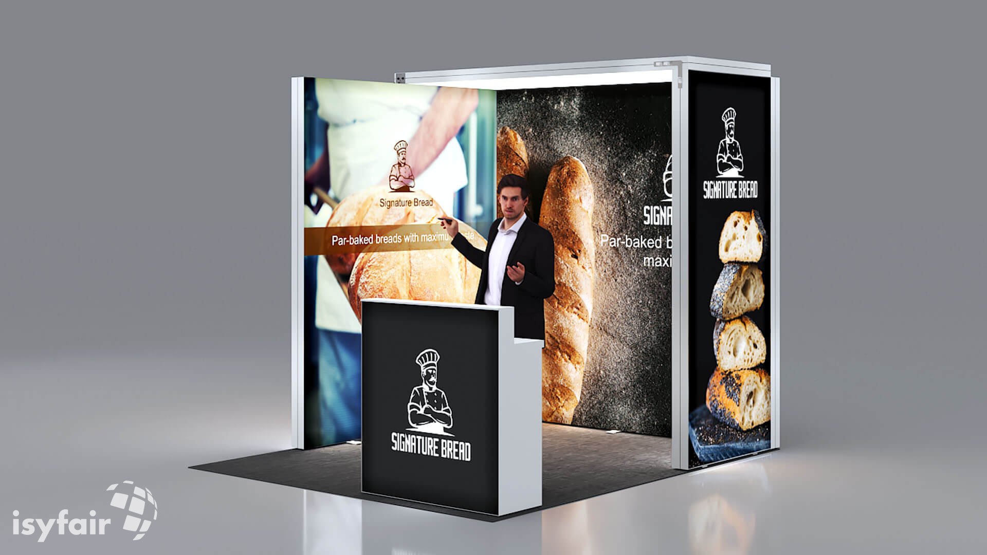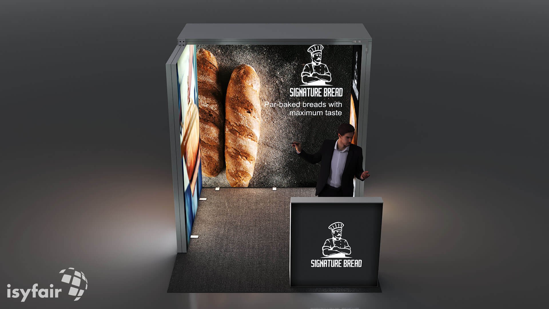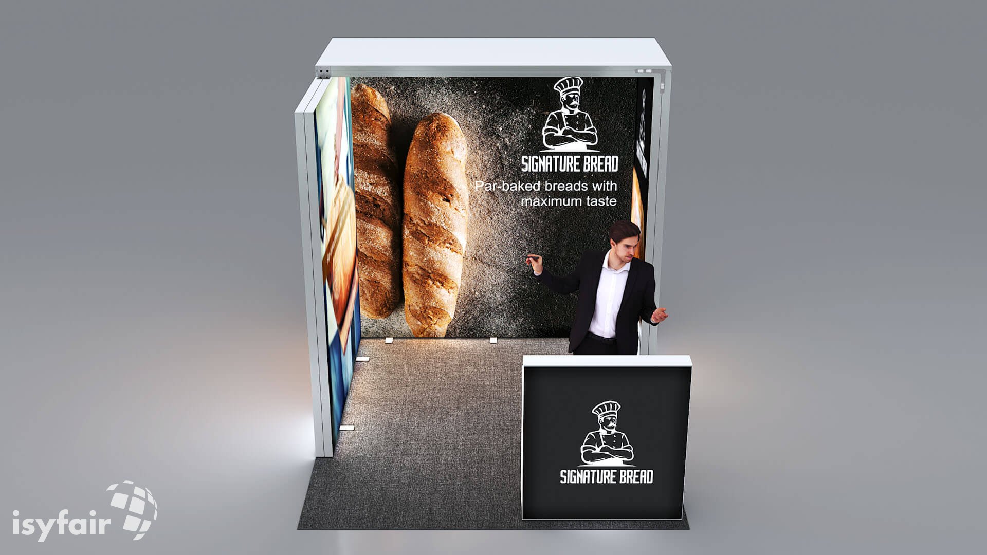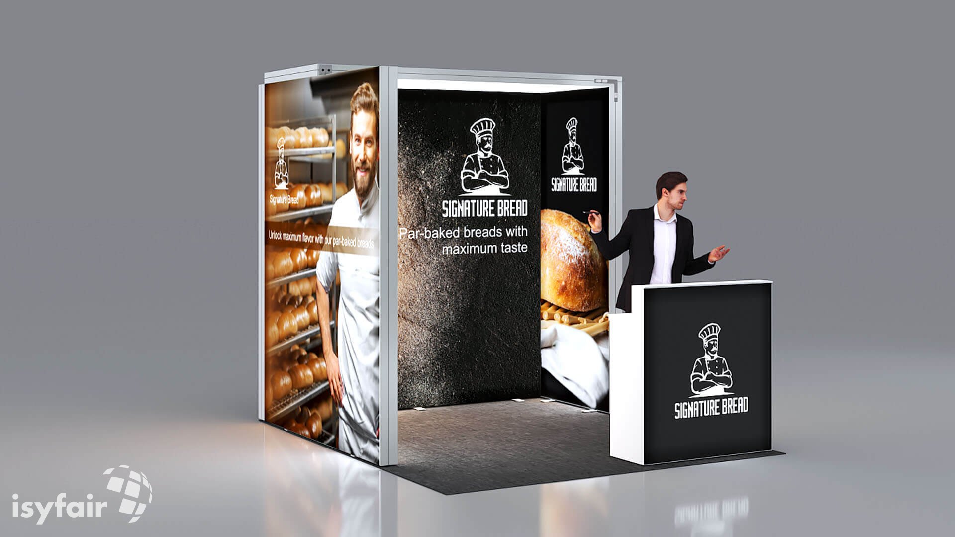 Dieses Messestand Design ist selbstverständlich an Ihre Vorstellungen anpassbar. Senden Sie uns dazu einfach eine E-Mail an - info@ISYFAIR.com oder rufen Sie uns an: +49 6722 9372-234
