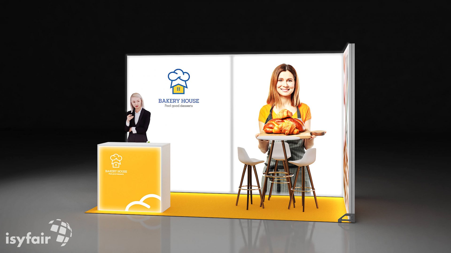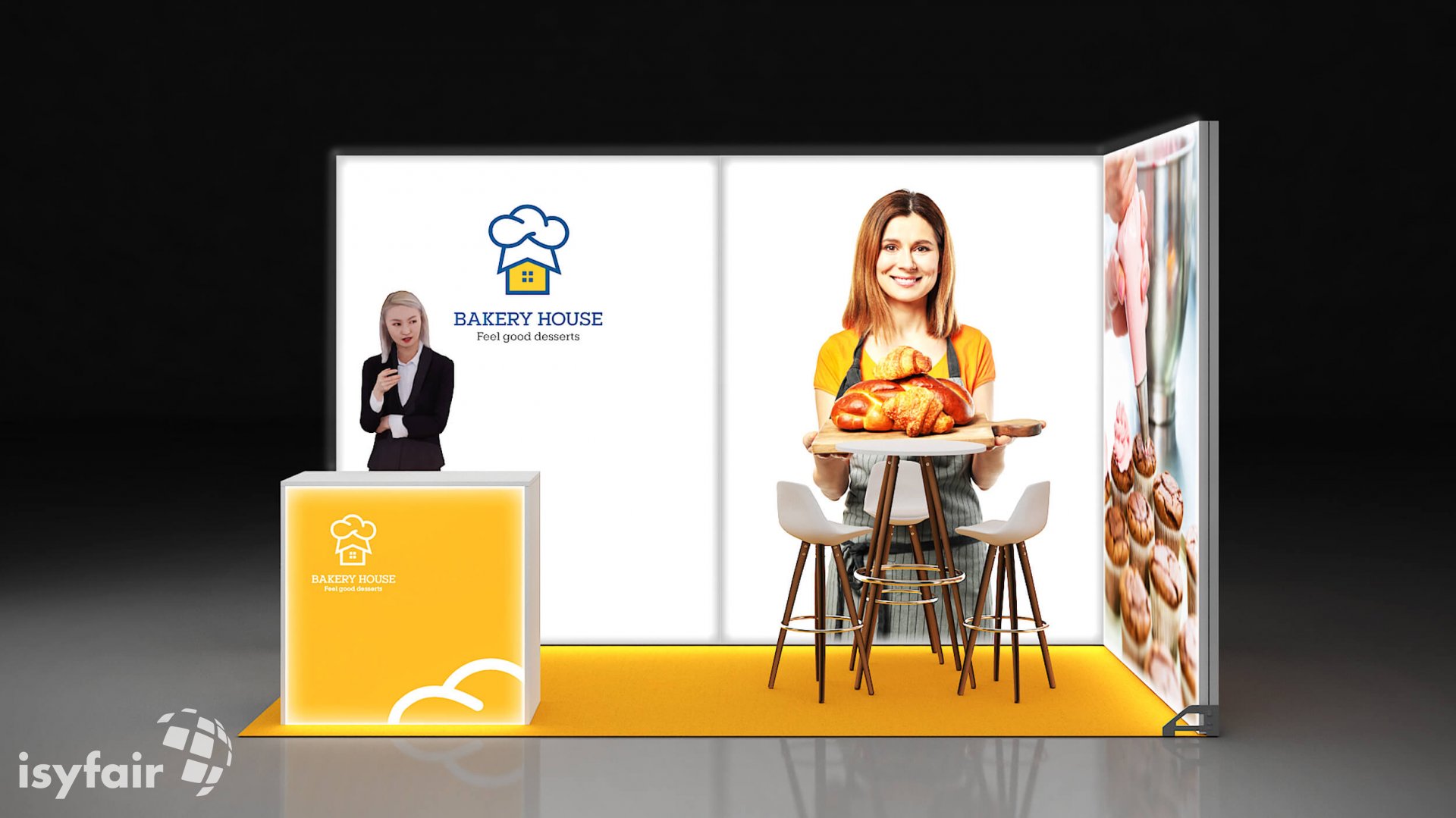 Dieses Messestand Design ist selbstverständlich an Ihre Vorstellungen anpassbar. Senden Sie uns dazu einfach eine E-Mail an - info@ISYFAIR.com oder rufen Sie uns an: +49 6722 9372-234