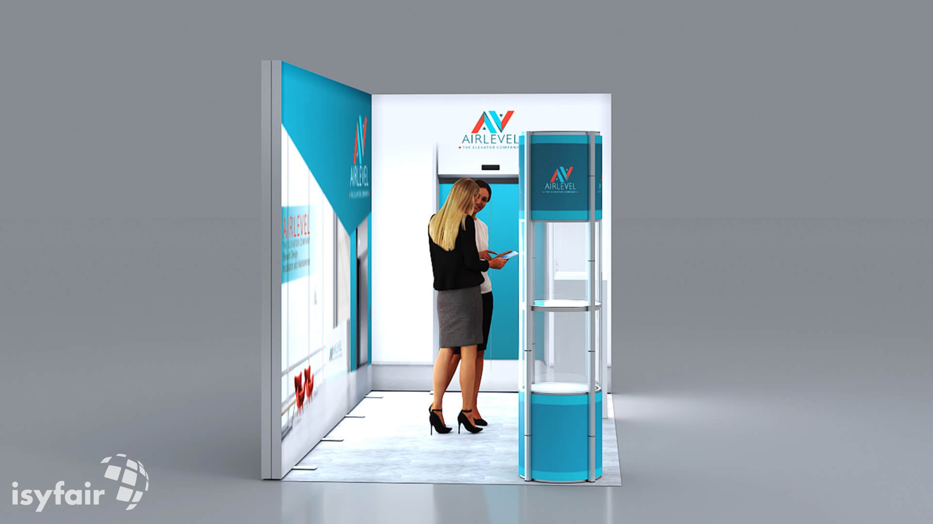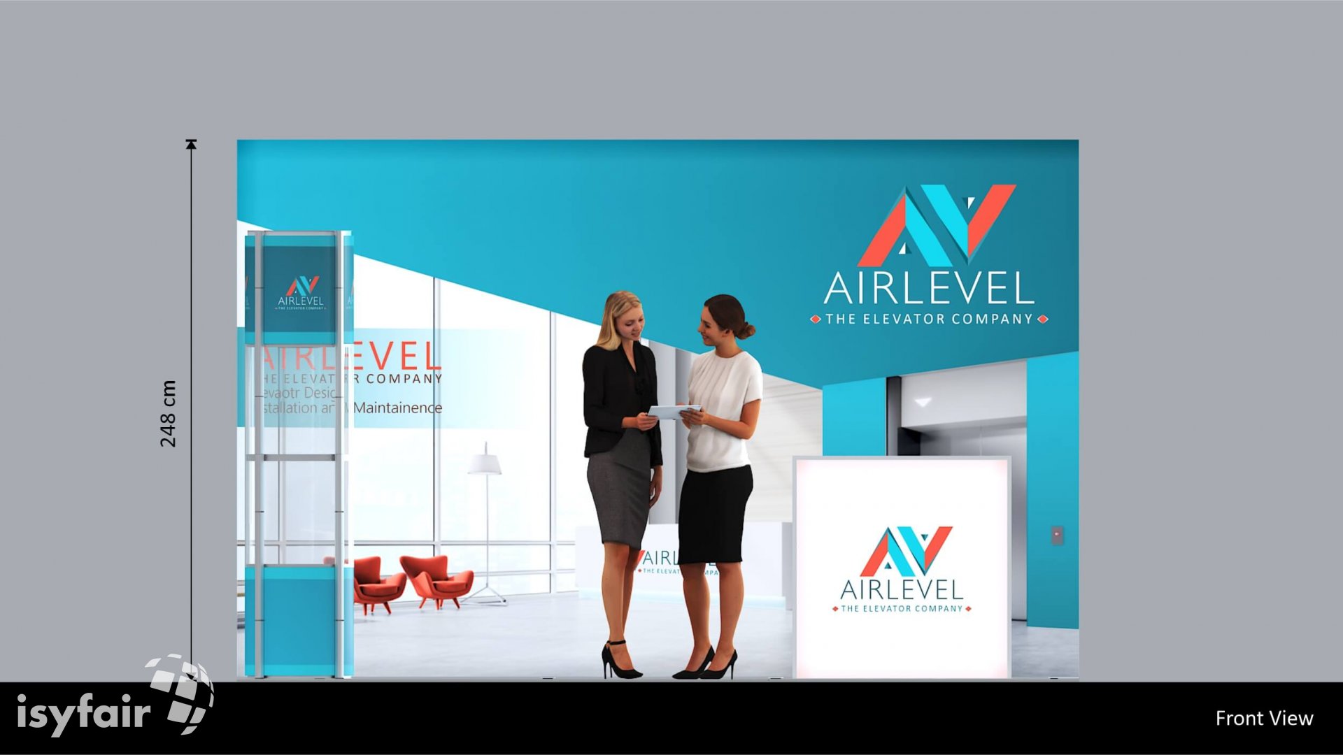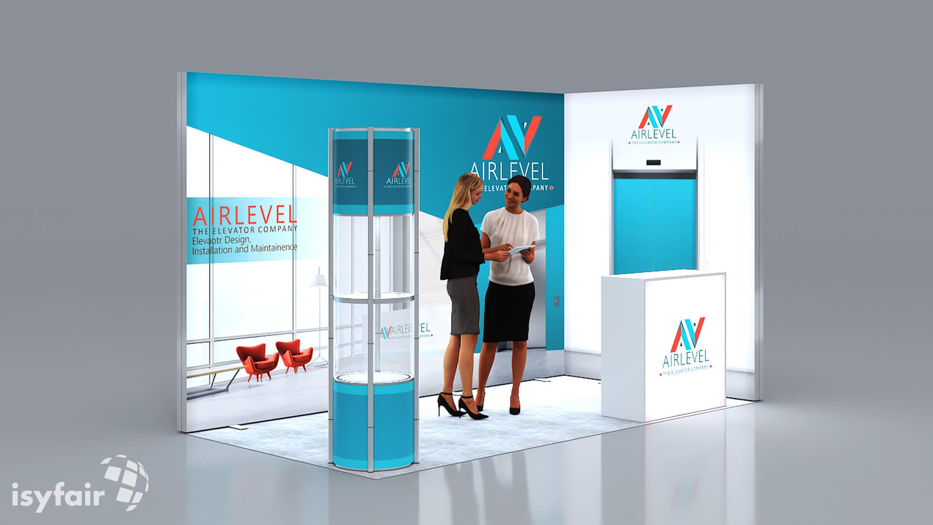 Dieses Messestand Design ist selbstverständlich an Ihre Vorstellungen anpassbar. Senden Sie uns dazu einfach eine E-Mail an - info@ISYFAIR.com oder rufen Sie uns an: +49 6722 9372-234