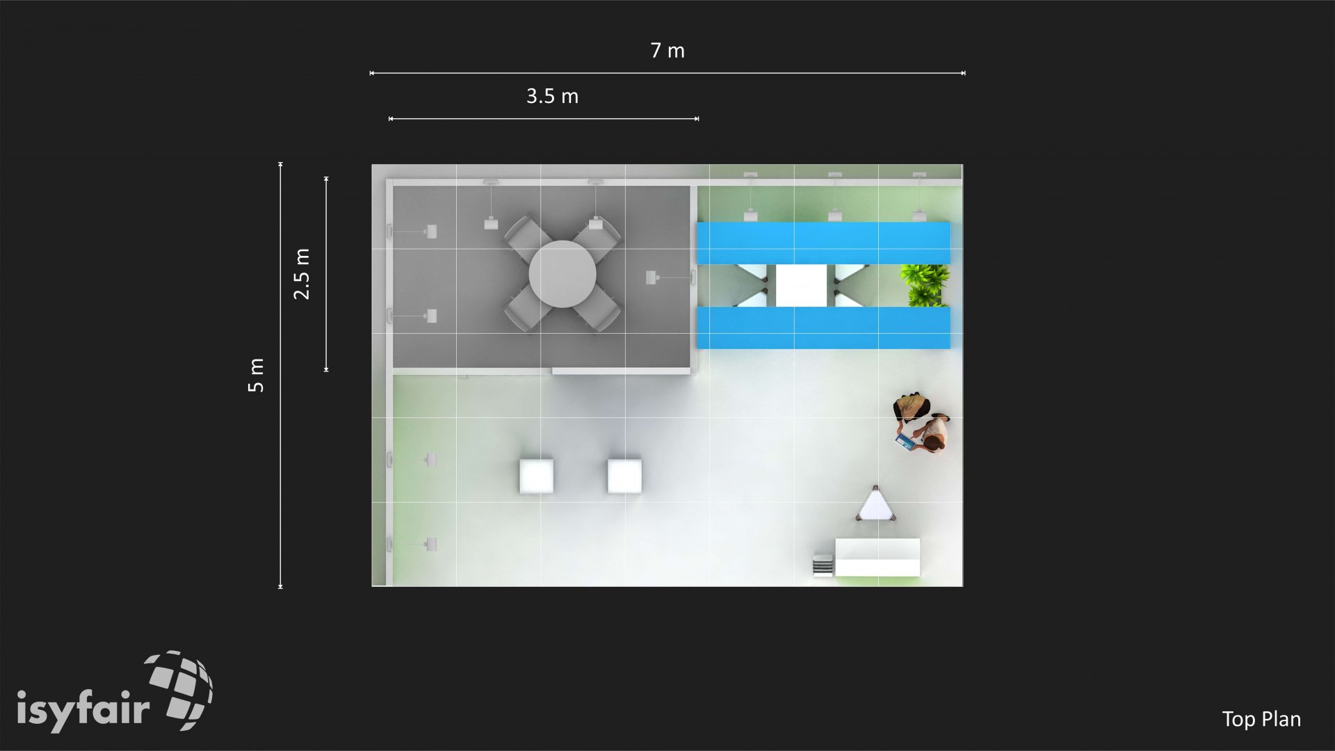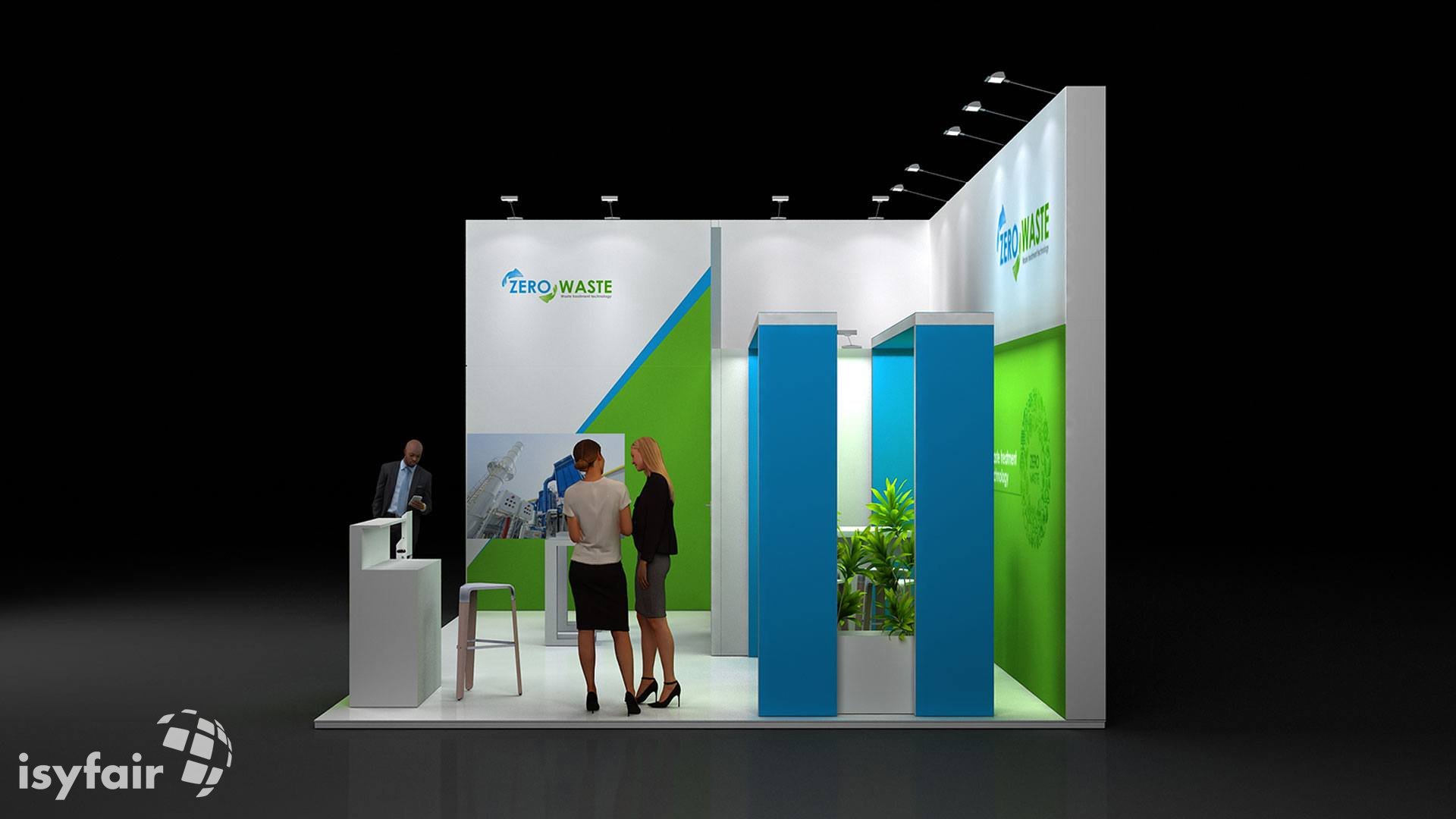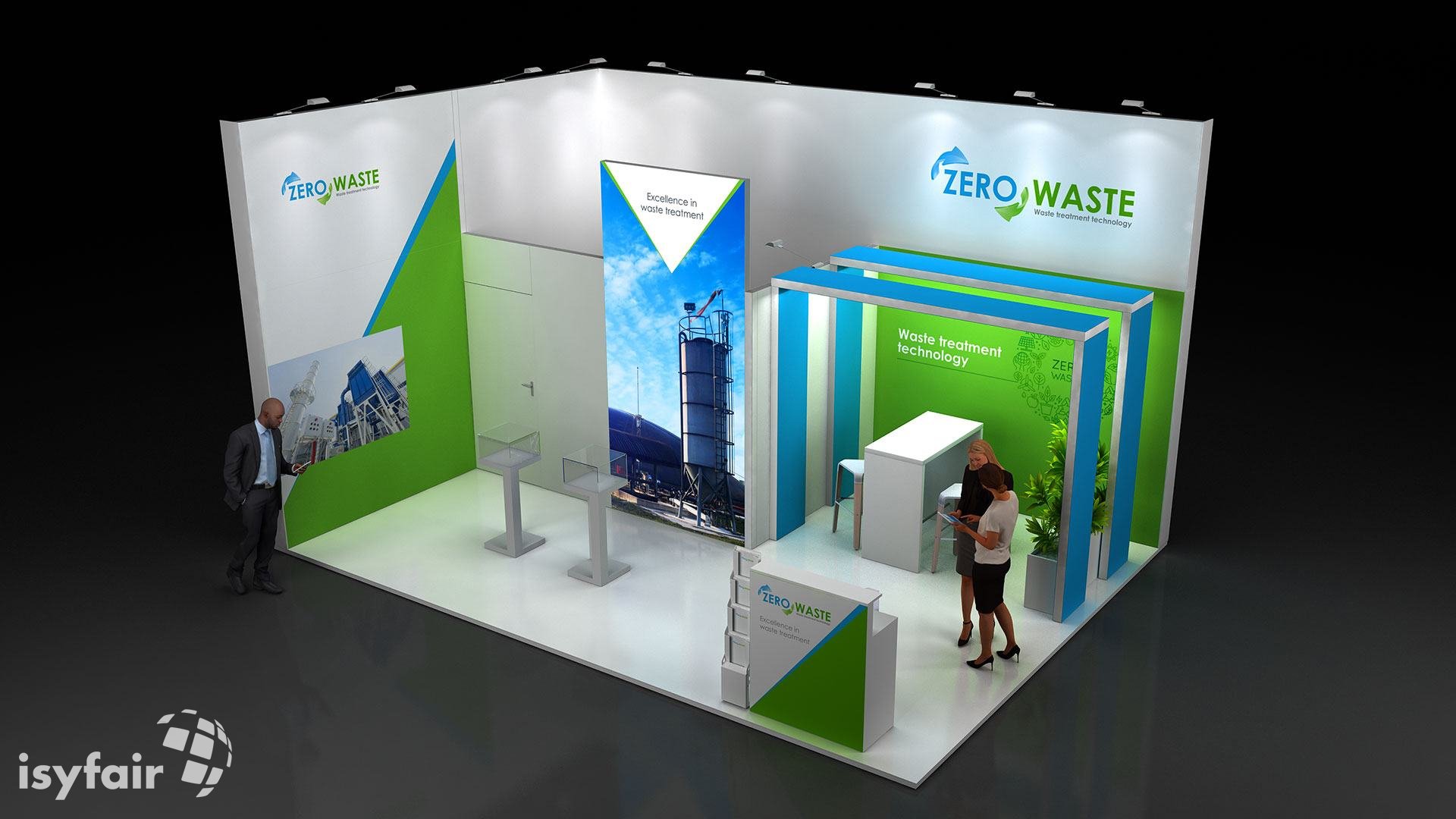 Dieses Messestand Design ist selbstverständlich an Ihre Vorstellungen anpassbar. Senden Sie uns dazu einfach eine E-Mail an - info@ISYFAIR.com oder rufen Sie uns an: +49 6722 9372-234