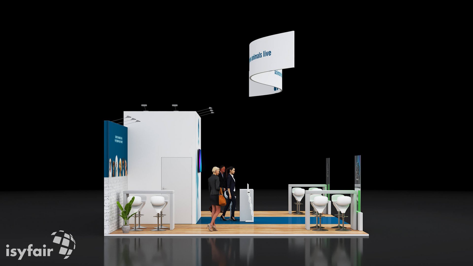 Dieses Messestand Design ist selbstverständlich an Ihre Vorstellungen anpassbar. Senden Sie uns dazu einfach eine E-Mail an - info@ISYFAIR.com oder rufen Sie uns an: +49 6722 9372-234