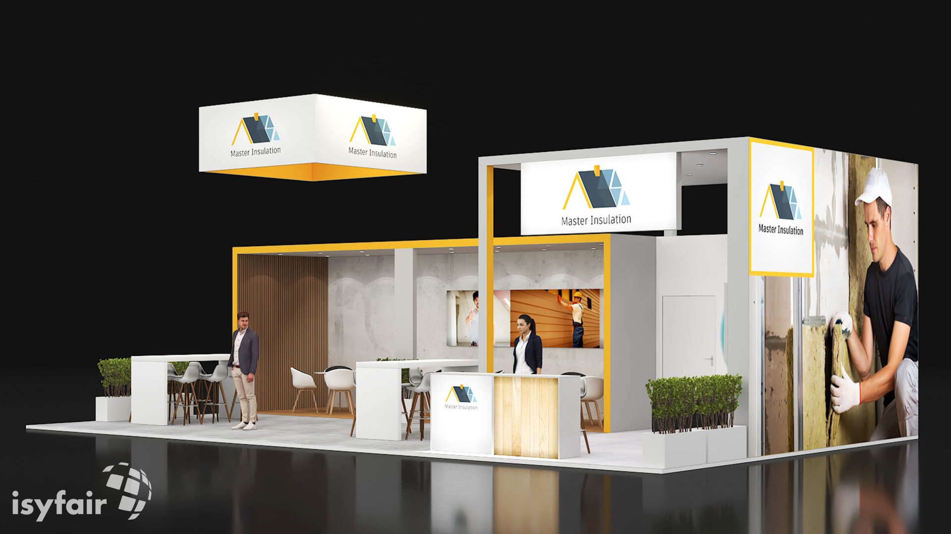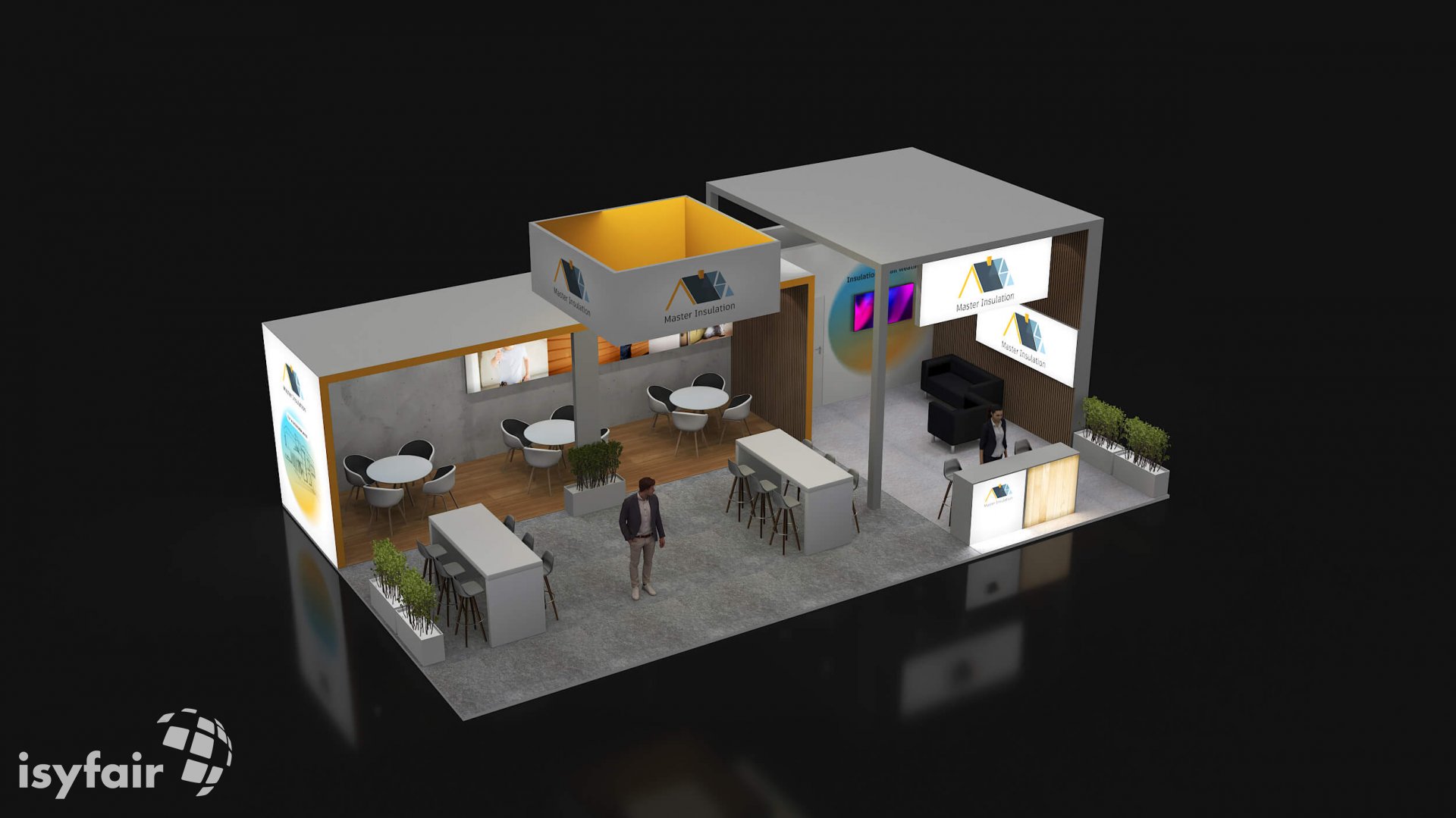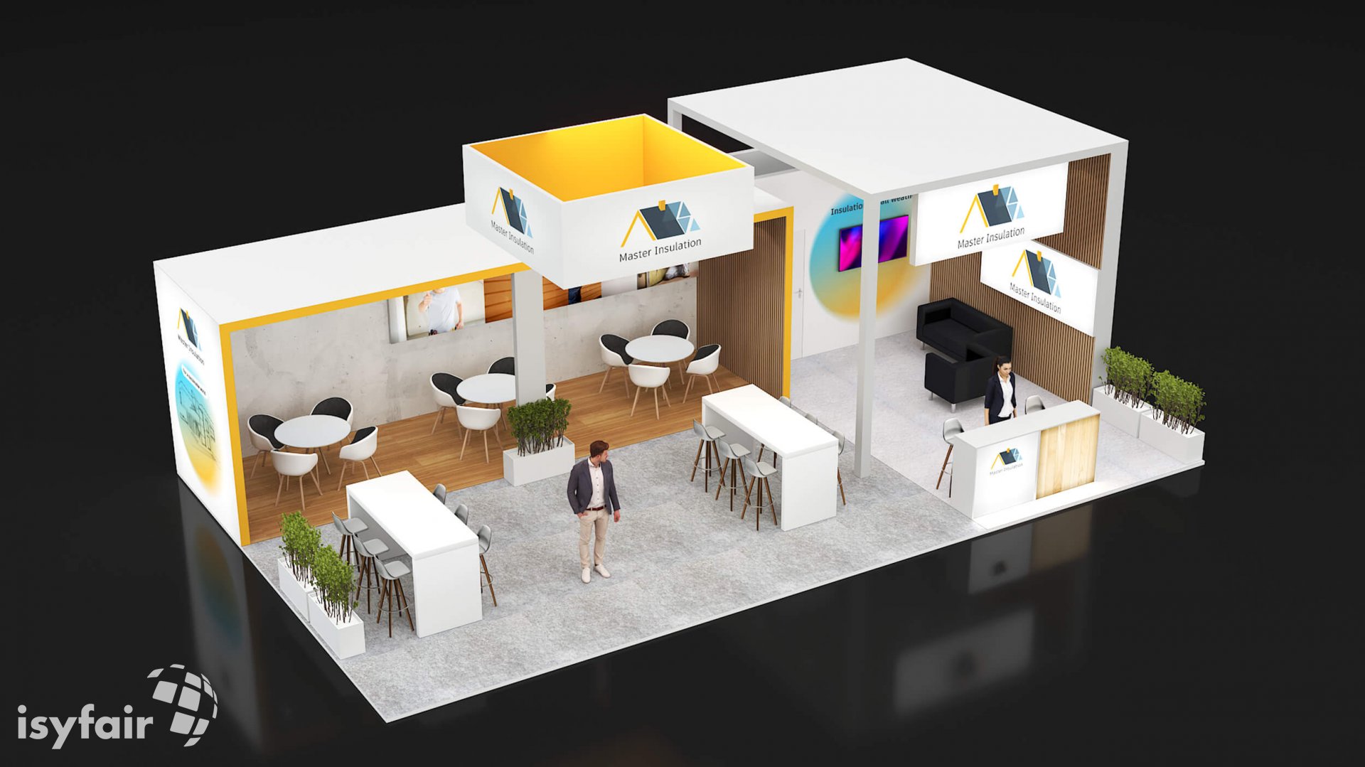 Dieses Messestand Design ist selbstverständlich an Ihre Vorstellungen anpassbar. Senden Sie uns dazu einfach eine E-Mail an - info@ISYFAIR.com oder rufen Sie uns an: +49 6722 9372-234