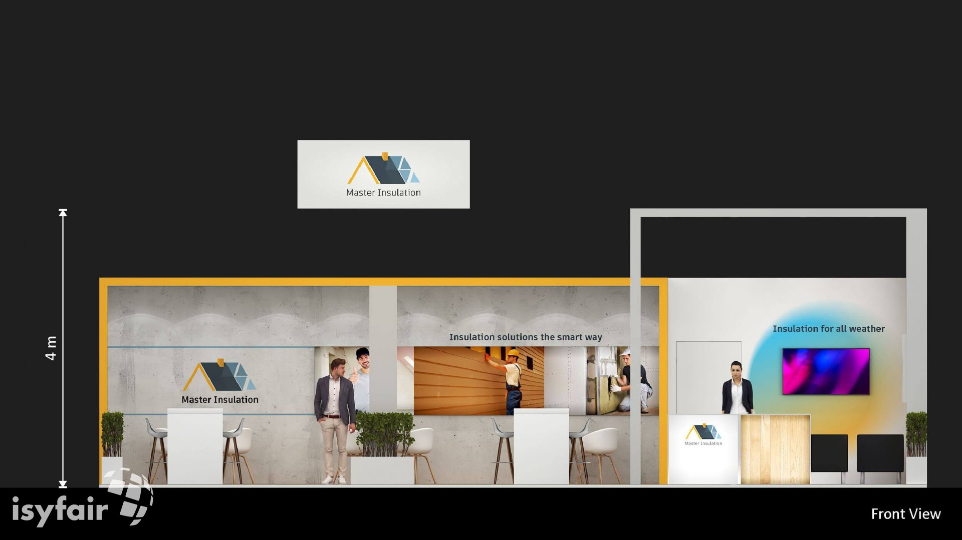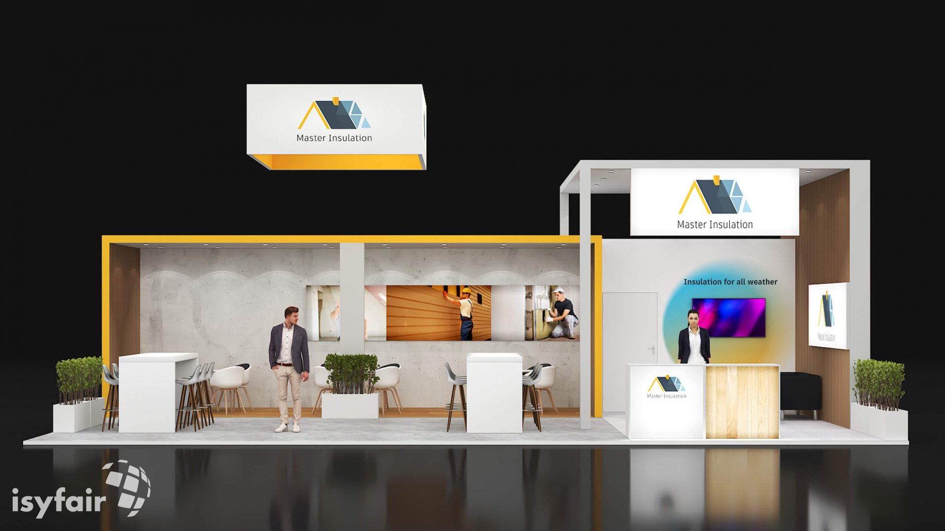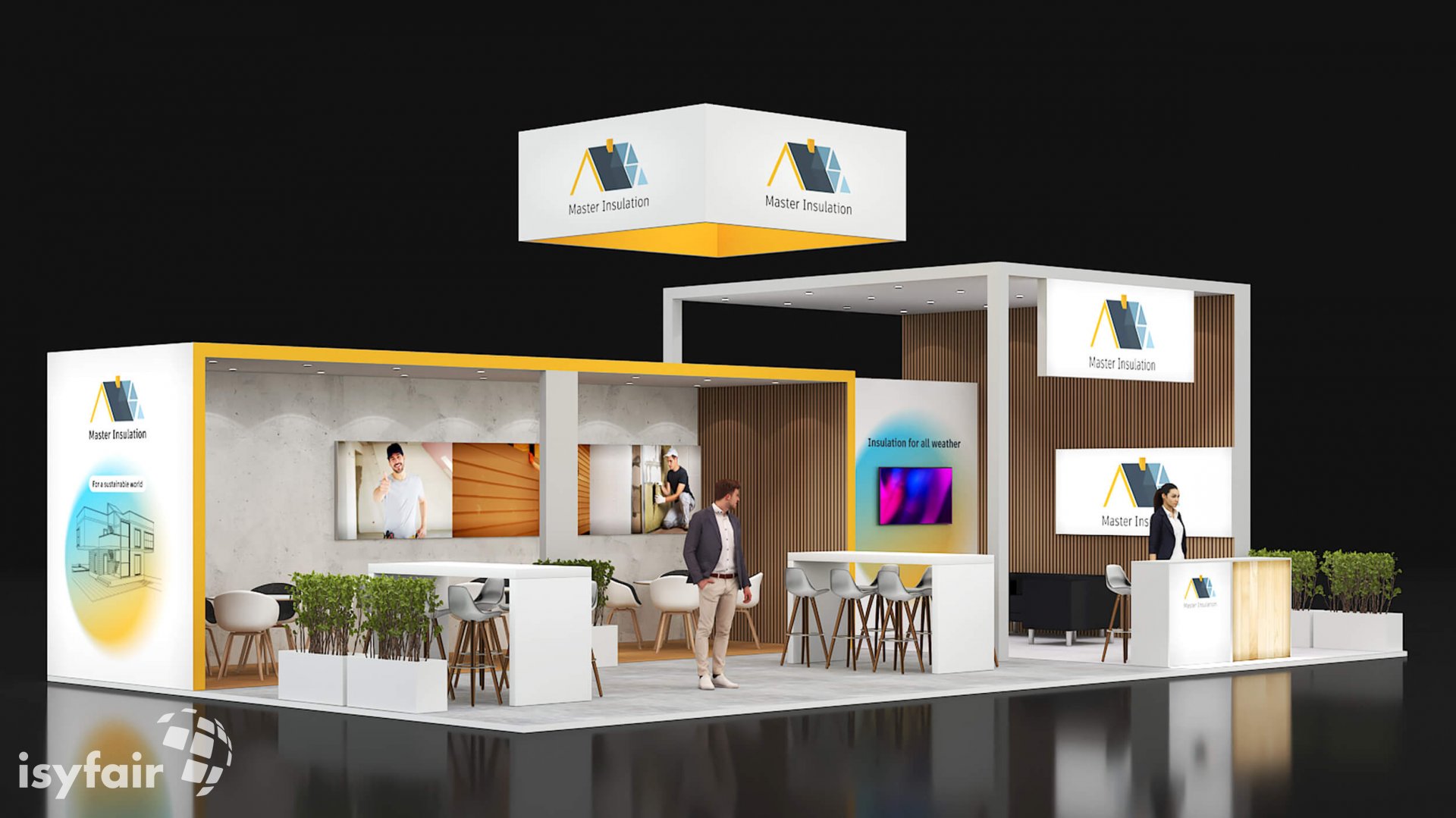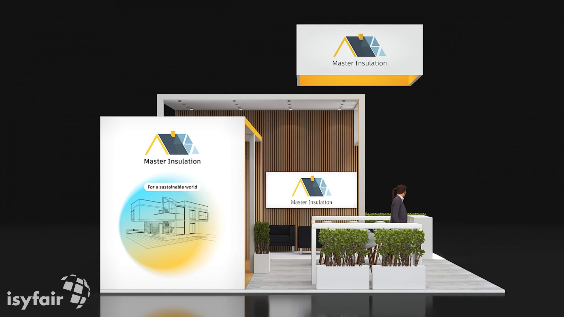 Dieses Messestand Design ist selbstverständlich an Ihre Vorstellungen anpassbar. Senden Sie uns dazu einfach eine E-Mail an - info@ISYFAIR.com oder rufen Sie uns an: +49 6722 9372-234
