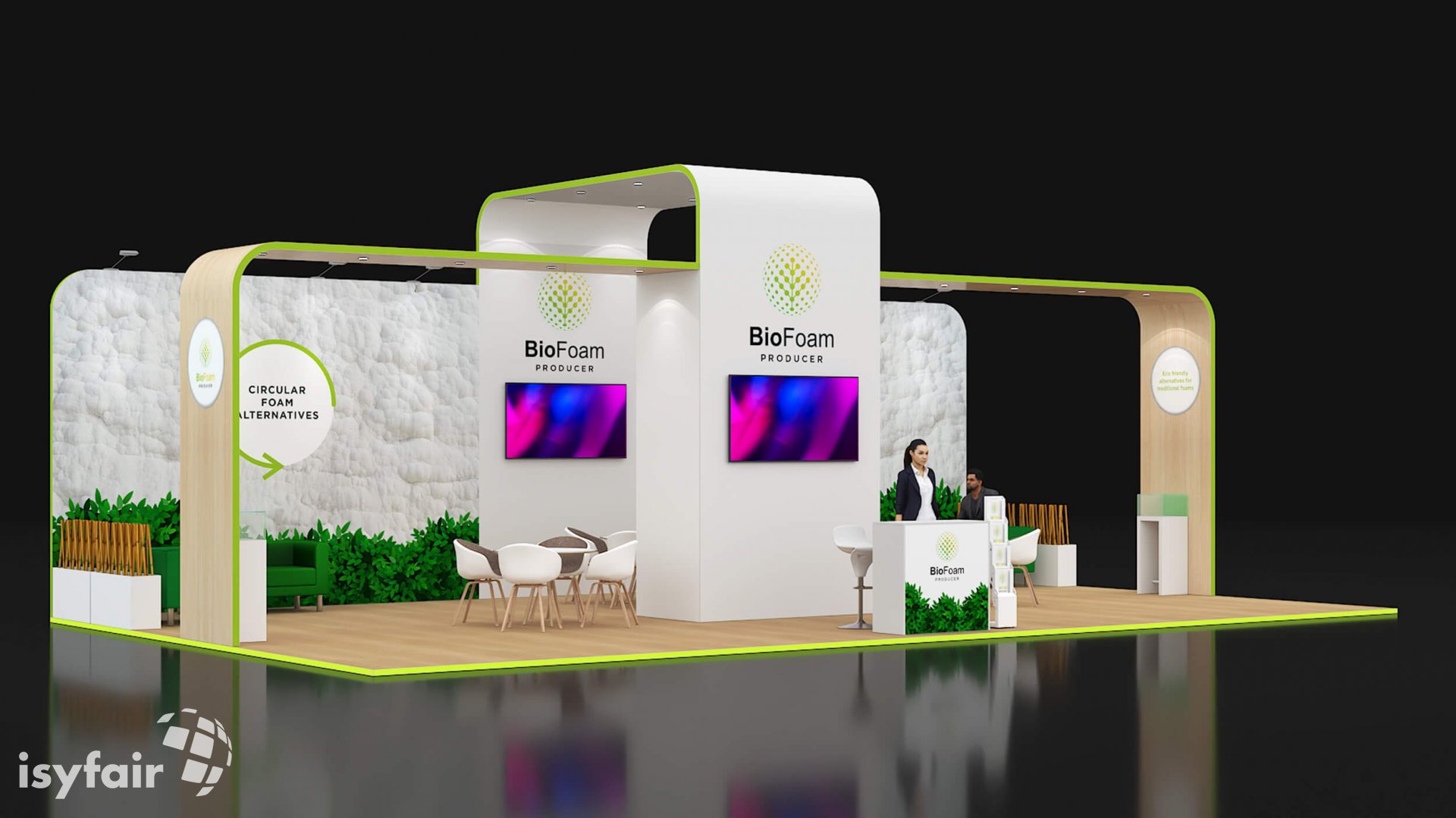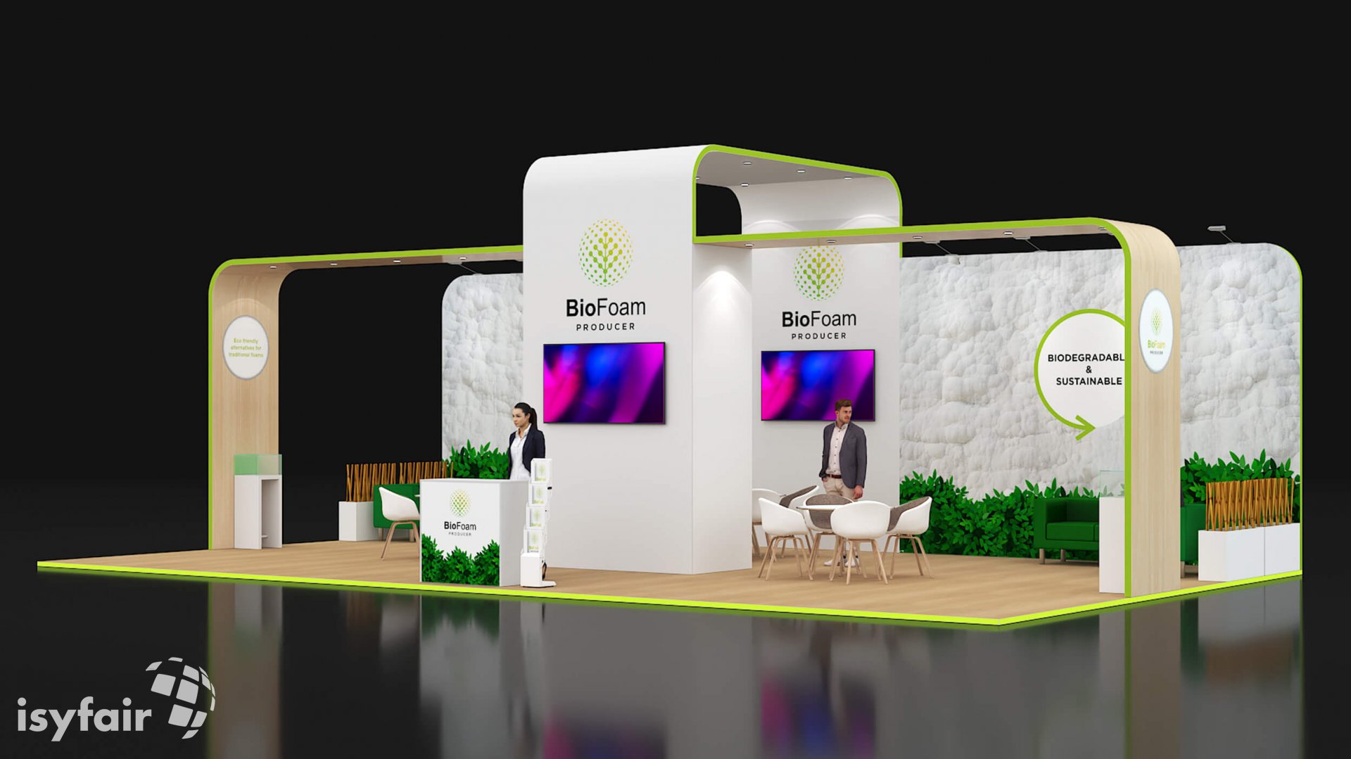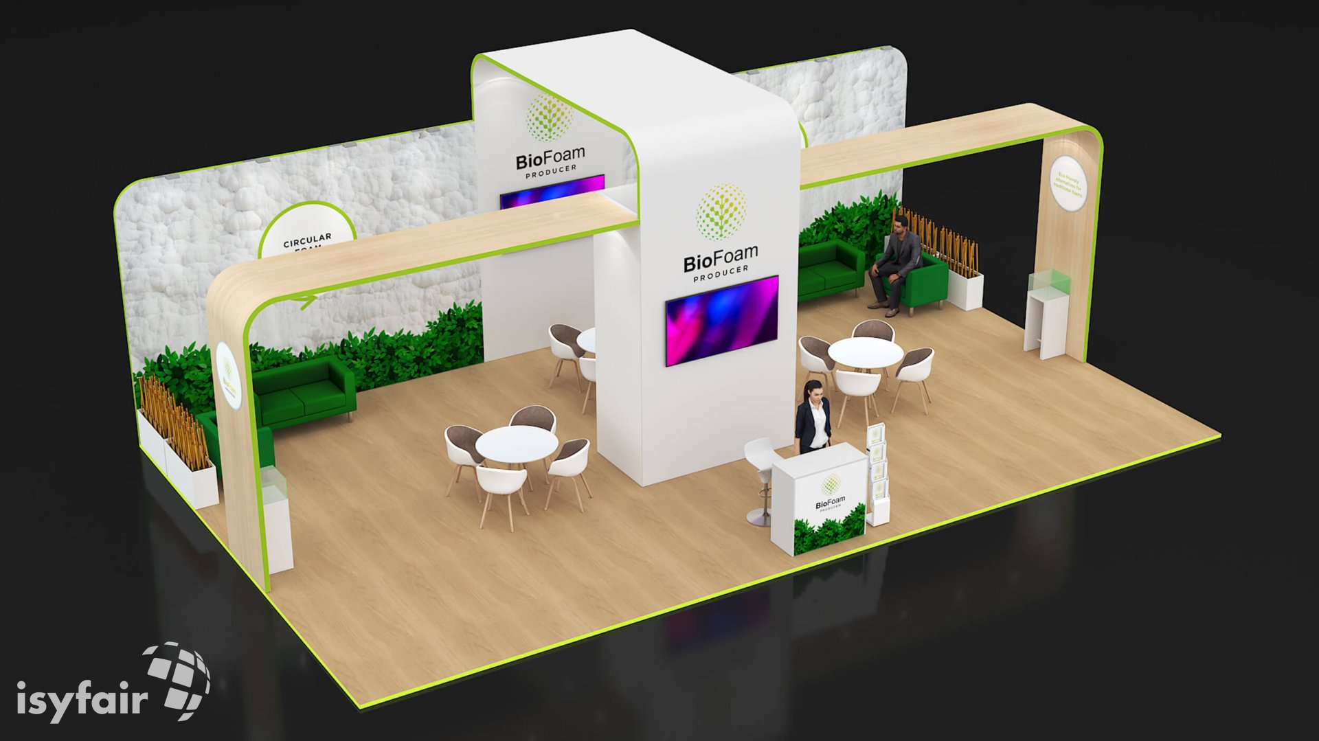Dieses Messestand Design ist selbstverständlich an Ihre Vorstellungen anpassbar. Senden Sie uns dazu einfach eine E-Mail an - info@ISYFAIR.com oder rufen Sie uns an: +49 6722 9372-234