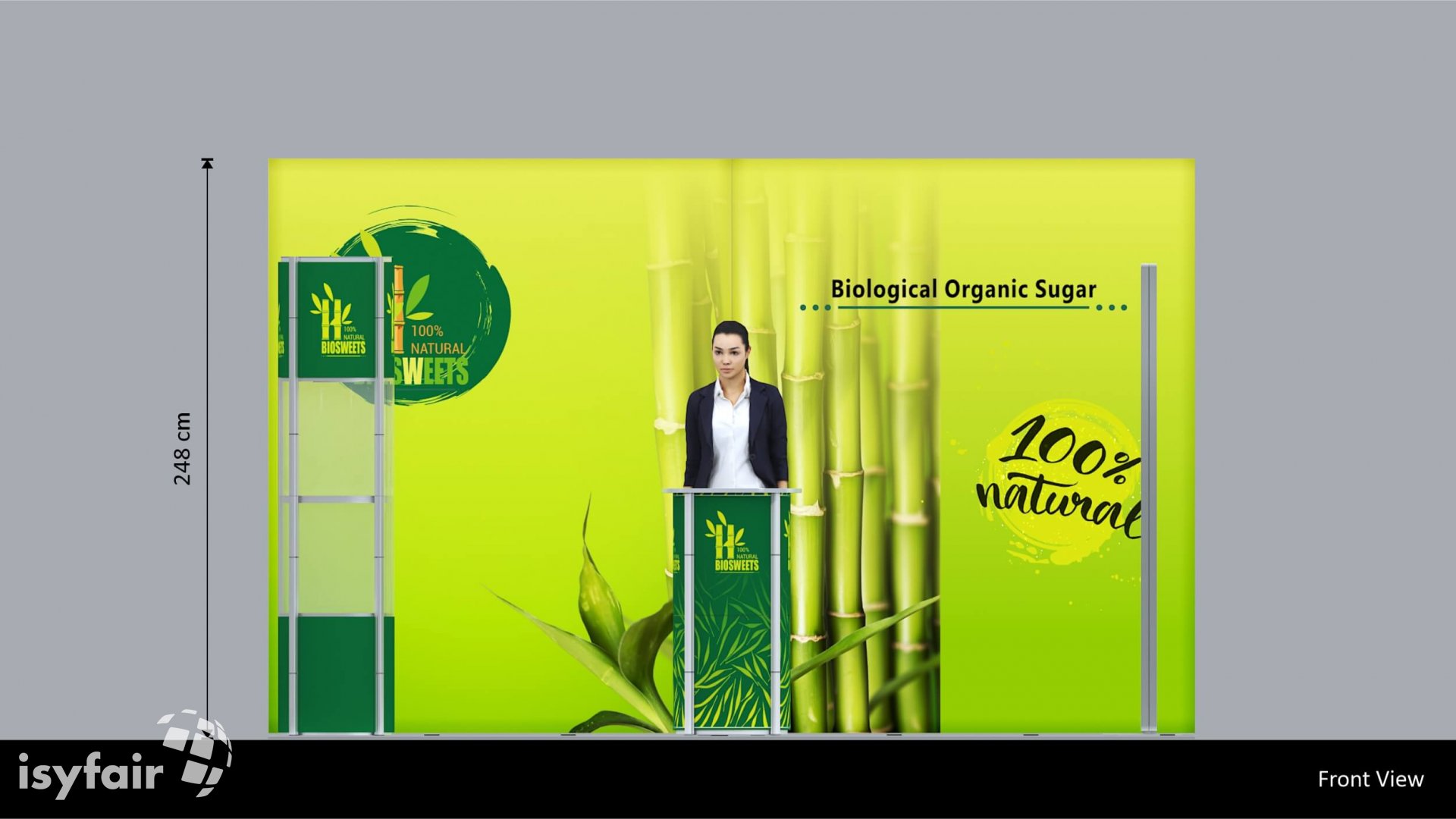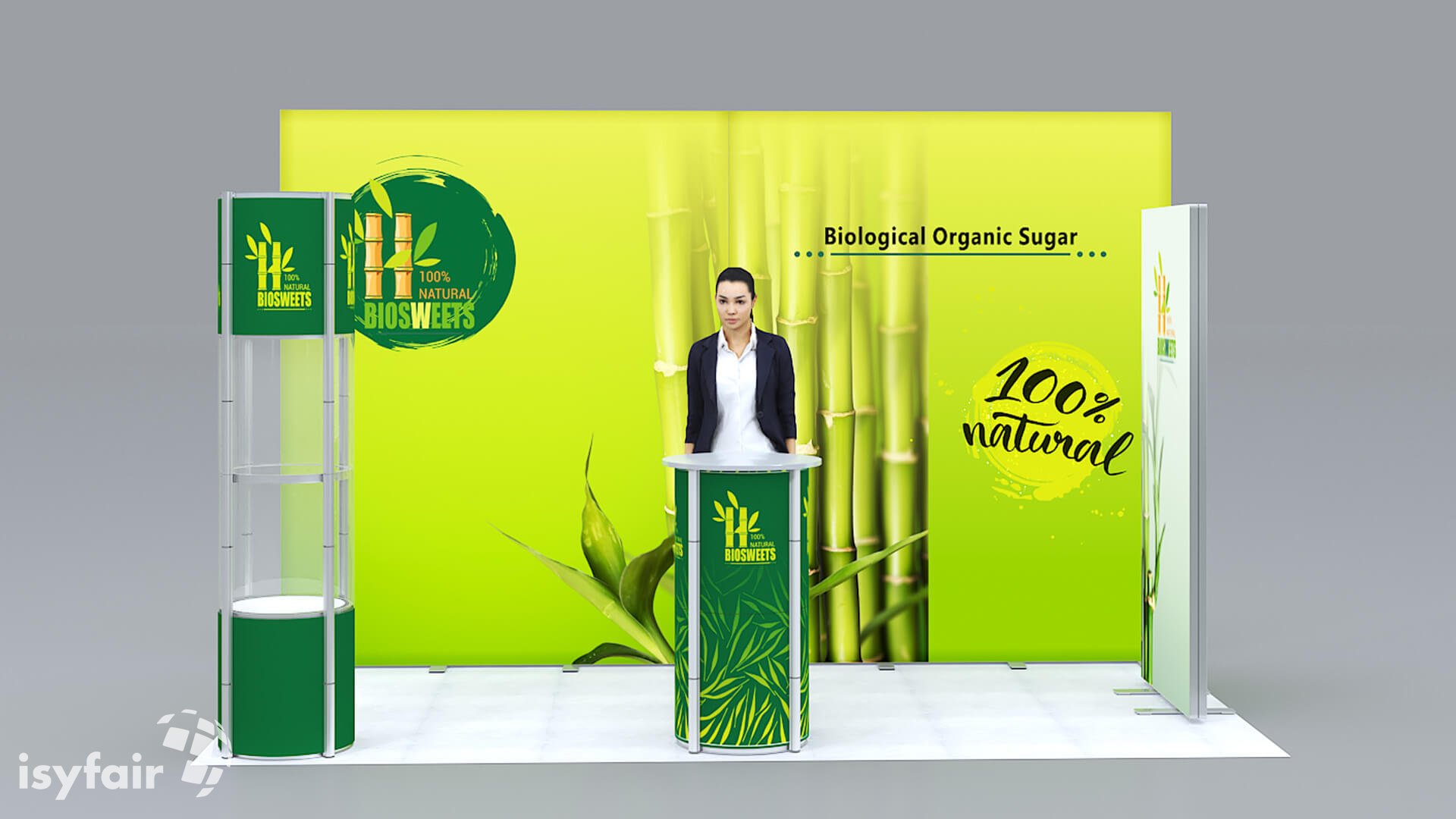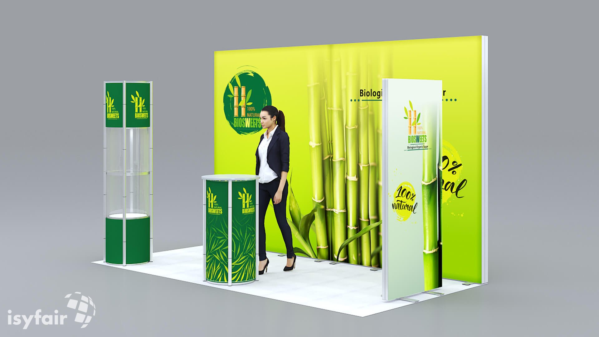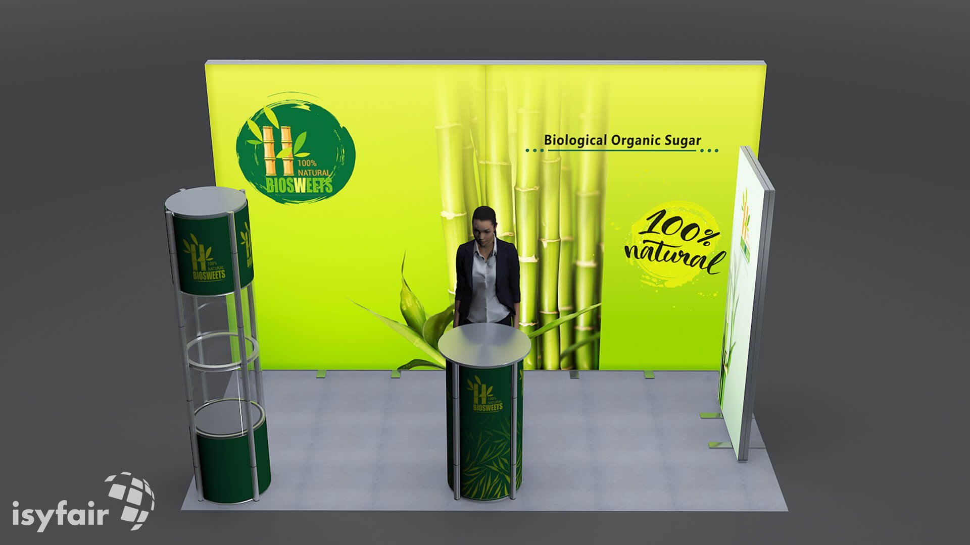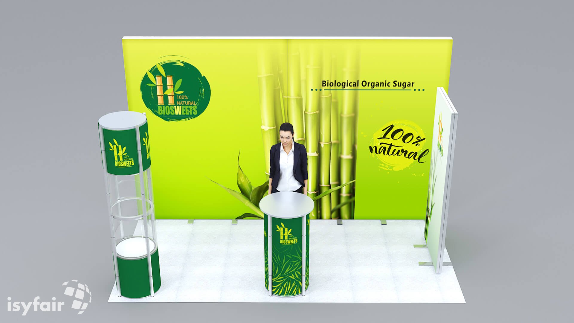 Dieses Messestand Design ist selbstverständlich an Ihre Vorstellungen anpassbar. Senden Sie uns dazu einfach eine E-Mail an - info@ISYFAIR.com oder rufen Sie uns an: +49 6722 9372-234