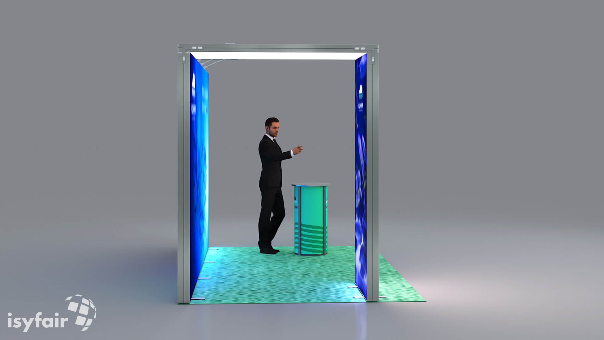 Dieses Messestand Design ist selbstverständlich an Ihre Vorstellungen anpassbar. Senden Sie uns dazu einfach eine E-Mail an - info@ISYFAIR.com oder rufen Sie uns an: +49 6722 9372-234