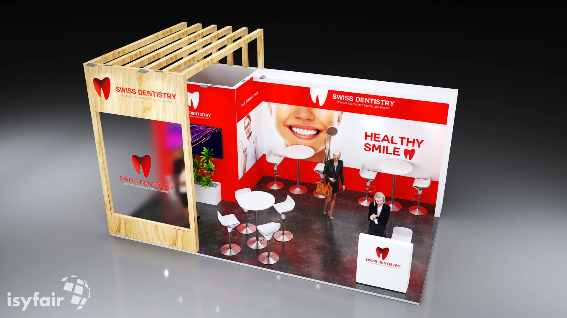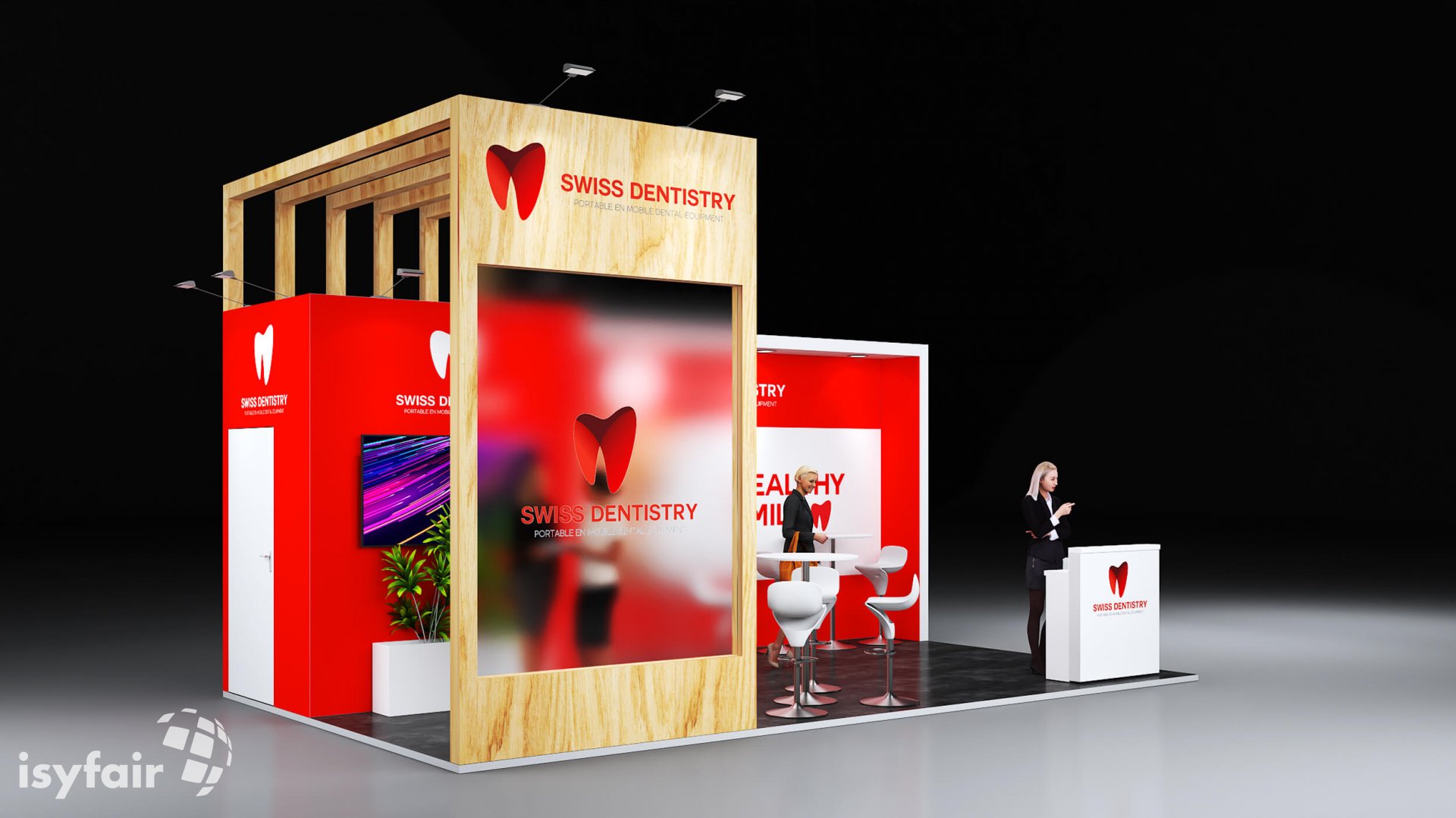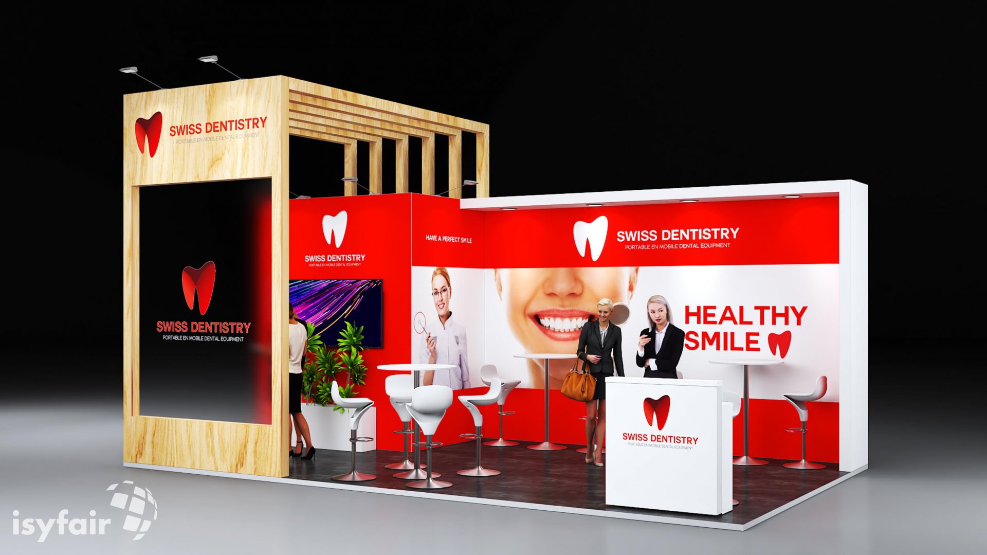 Dieses Messestand Design ist selbstverständlich an Ihre Vorstellungen anpassbar. Senden Sie uns dazu einfach eine E-Mail an - info@ISYFAIR.com oder rufen Sie uns an: +49 6722 9372-234