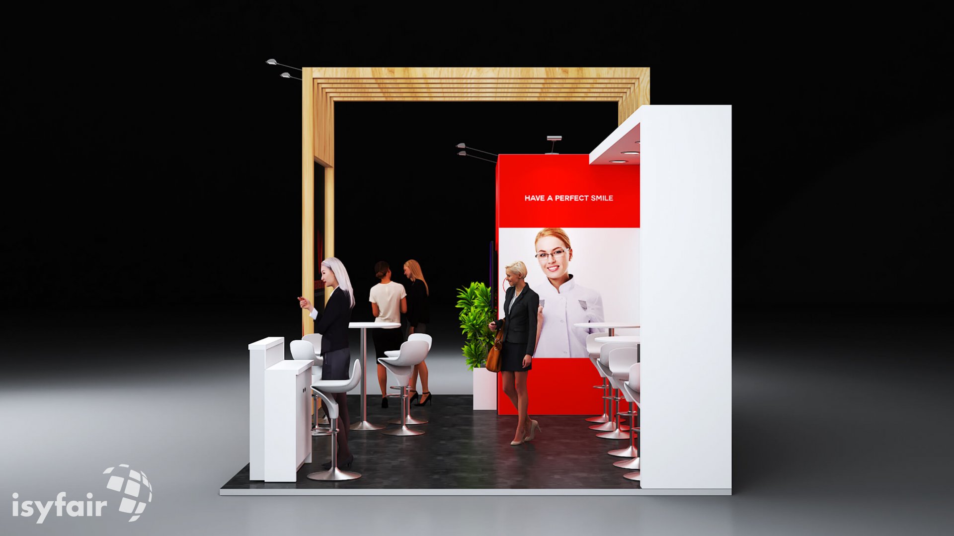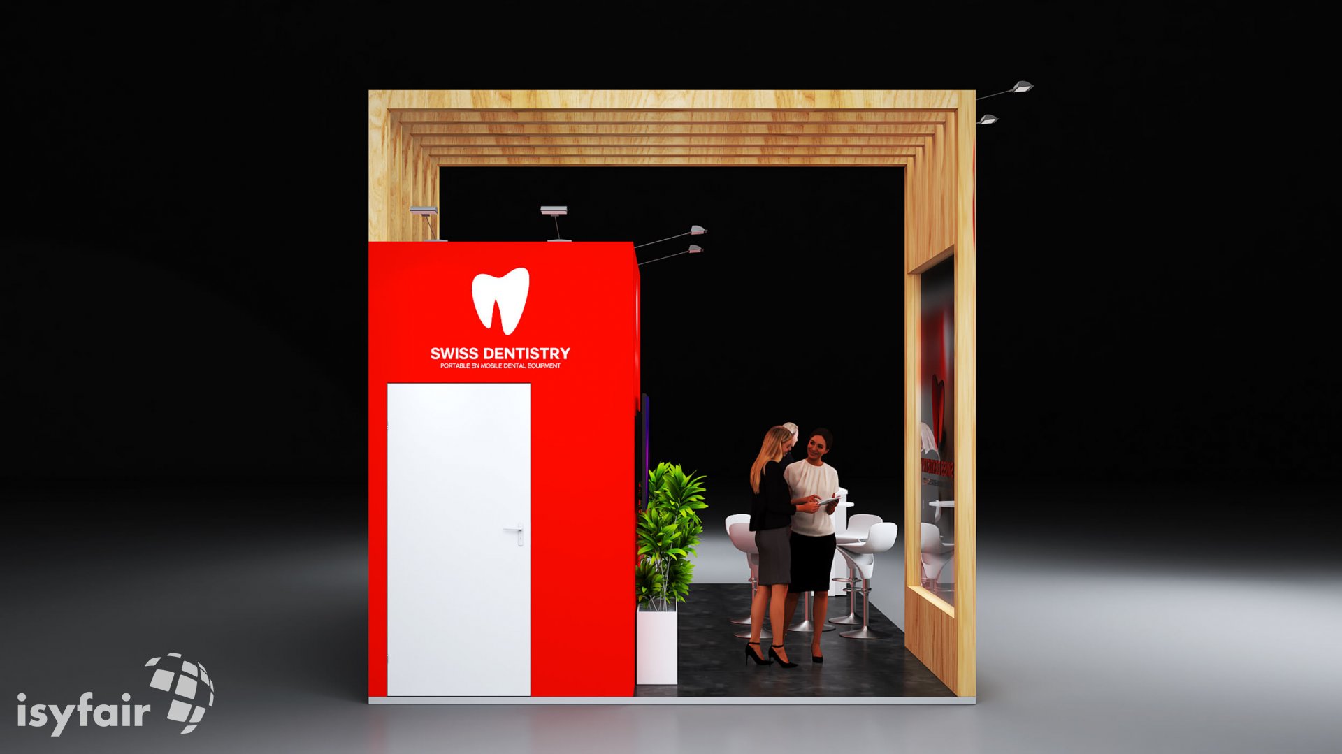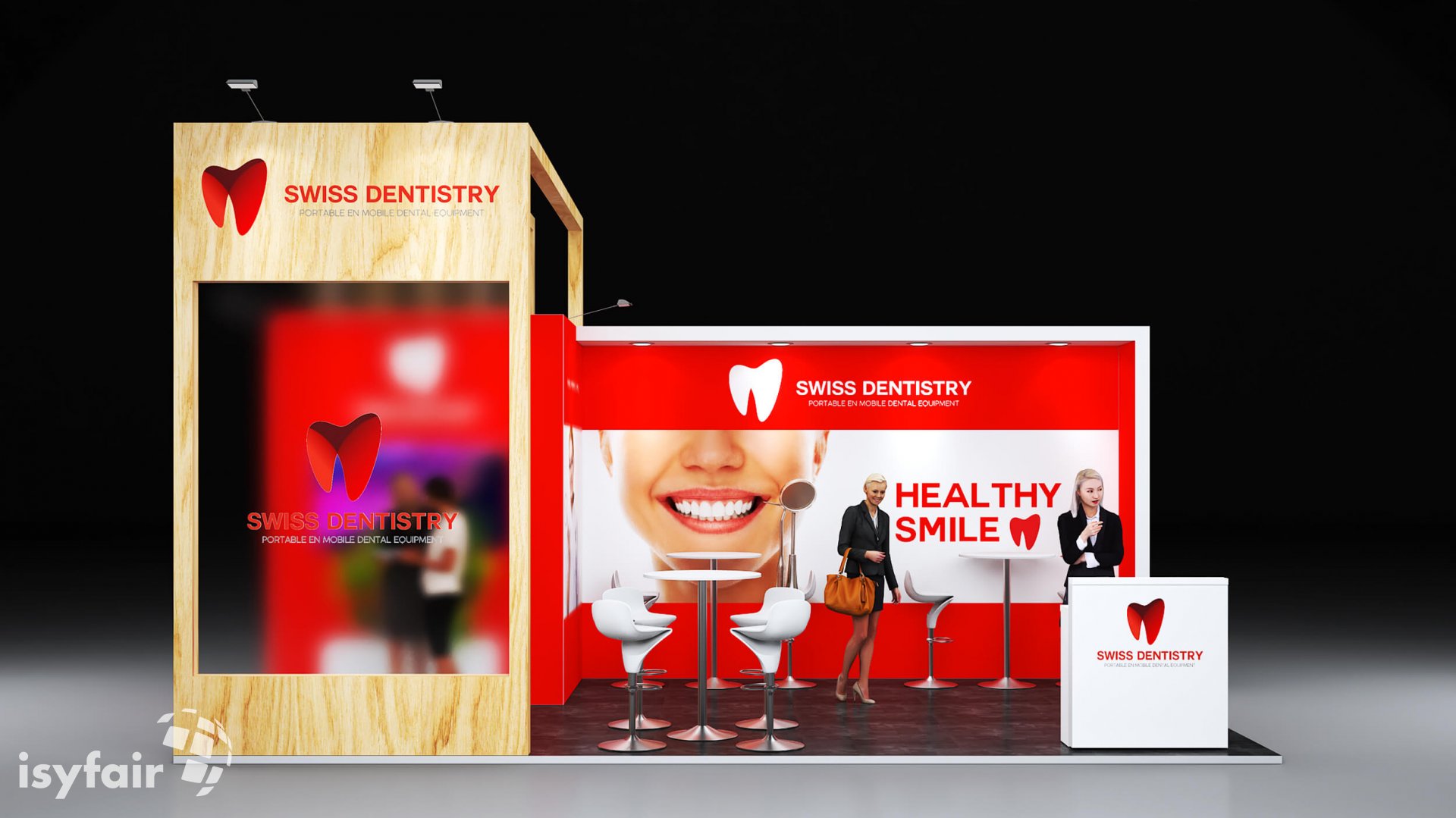 Dieses Messestand Design ist selbstverständlich an Ihre Vorstellungen anpassbar. Senden Sie uns dazu einfach eine E-Mail an - info@ISYFAIR.com oder rufen Sie uns an: +49 6722 9372-234